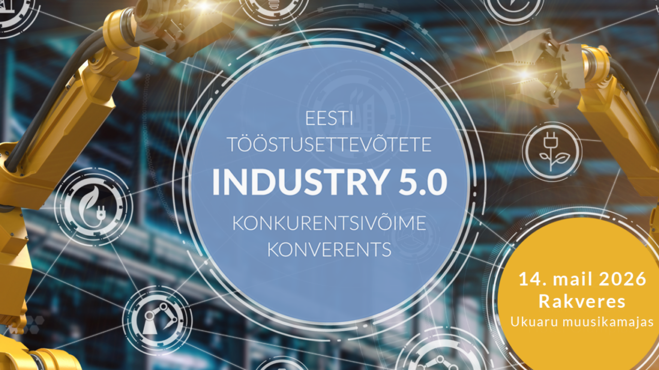 Industry 5.0 on Eesti tööstusettevõtete konkurentsivõime konverents, mis toimub 14. mail 2026 Rakveres, Ukuaru muusikamajas.